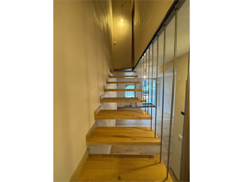 Dalla scala interna dal design moderno si accede alla zona notte che comprende due camere da letto ed un ulteriore bagno.